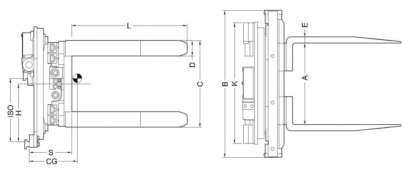 De minimum hoogte van de lading dat kan worden opgenomen van de grond is bepaald door de breedte van het frame van de klem.